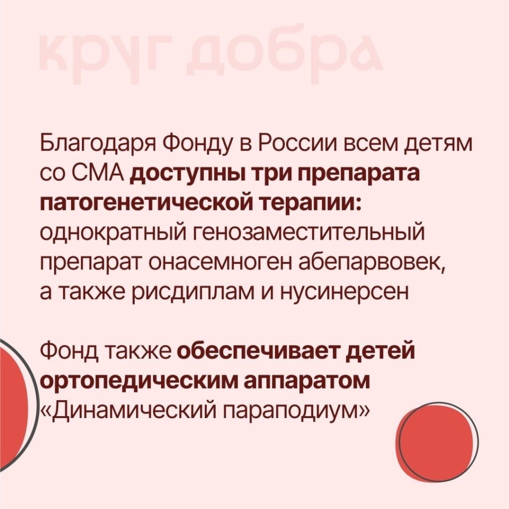 Август – месяц осведомленности о Спинальной мышечной атрофии (СМА), редком генетическом заболевании, которое может привести к серьезным последствиям. С момента создания Фонда «Круг добра» в 2021 году помощь была оказана 1682 детям со СМА, из которых 350 уже получили инновационный генозаместительный препарат. Это заболевание наследуется по аутосомно-рецессивному типу, и, по статистике, каждый 37-й россиянин является здоровым носителем гена, связанного со СМА.Фонд, созданный по поручению Президента России, стал важным механизмом поддержки детей с тяжелыми заболеваниями, обеспечивая доступ ко всем трем существующим в мире препаратам патогенетической терапии СМА. Благодаря этому дети получают необходимое лечение и поддержку, что значительно улучшает их качество жизни и шансы на успешное выздоровление.
