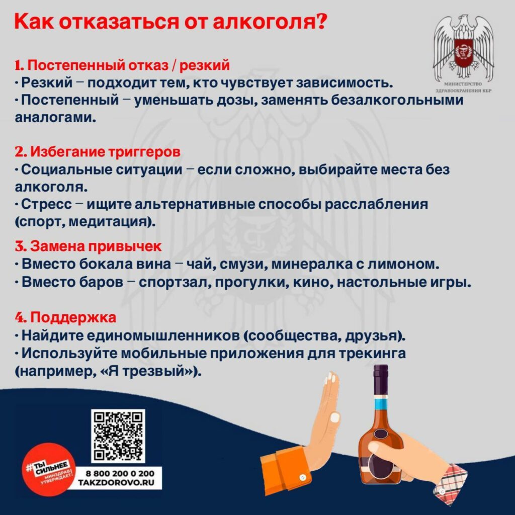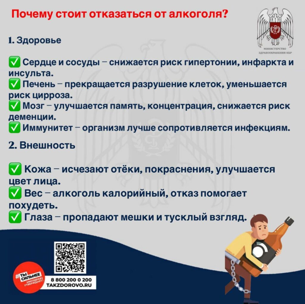 С 18 по 24 августа 2025 г. Министерство здравоохранения Российской федерации объявило неделей отказа от алкоголя